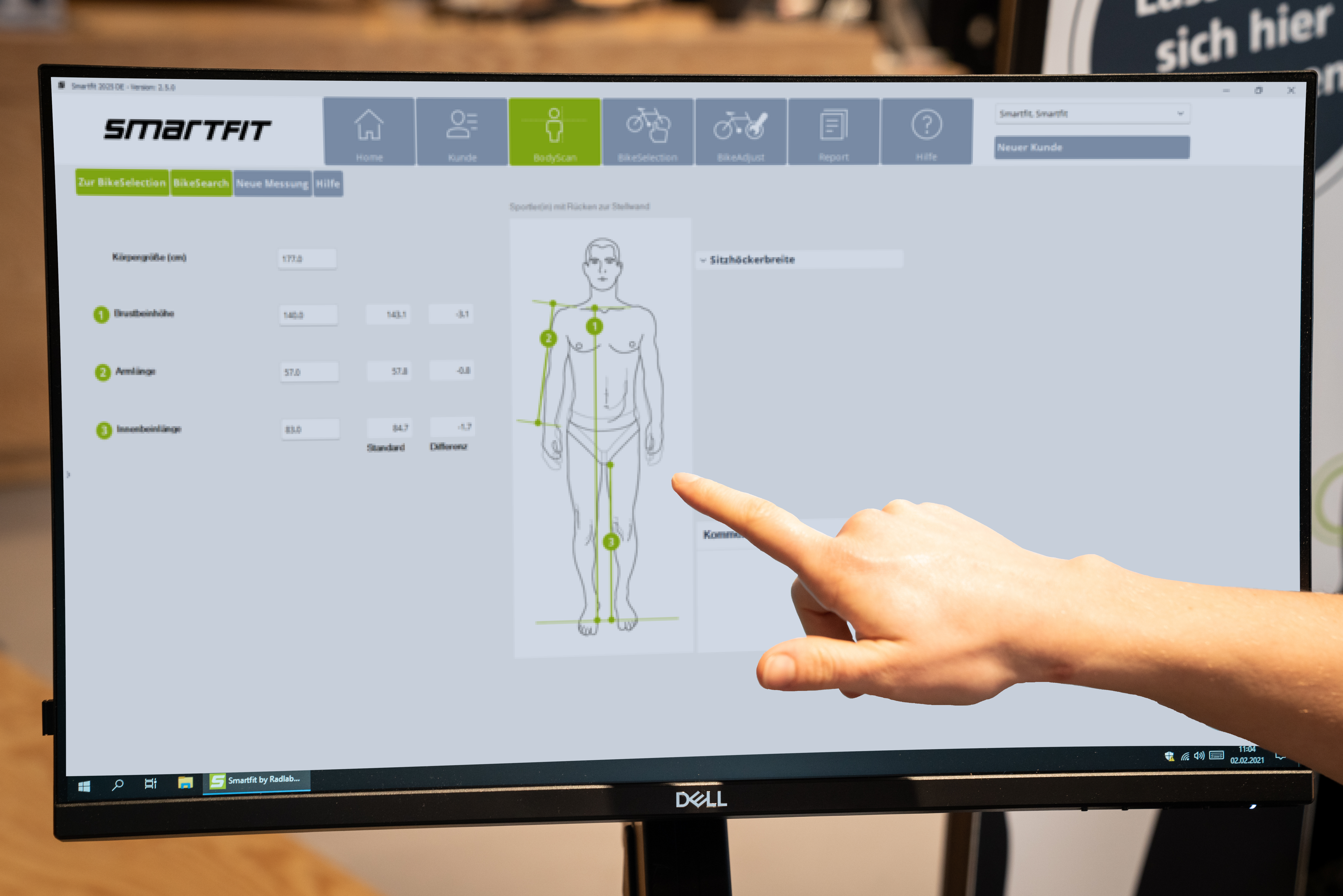 Smartfit bietet uns vor allem den Vorteil, uns von unseren Mitbewerbern abzusetzen. Bevor wir mit dem Kunden über sein Wunschrad sprechen, machen wir einen Bodyscan. Das erzeugt sofort einen ‚Wow-Effekt‘, weil die es von keinem anderen Shop in der Region kennen.