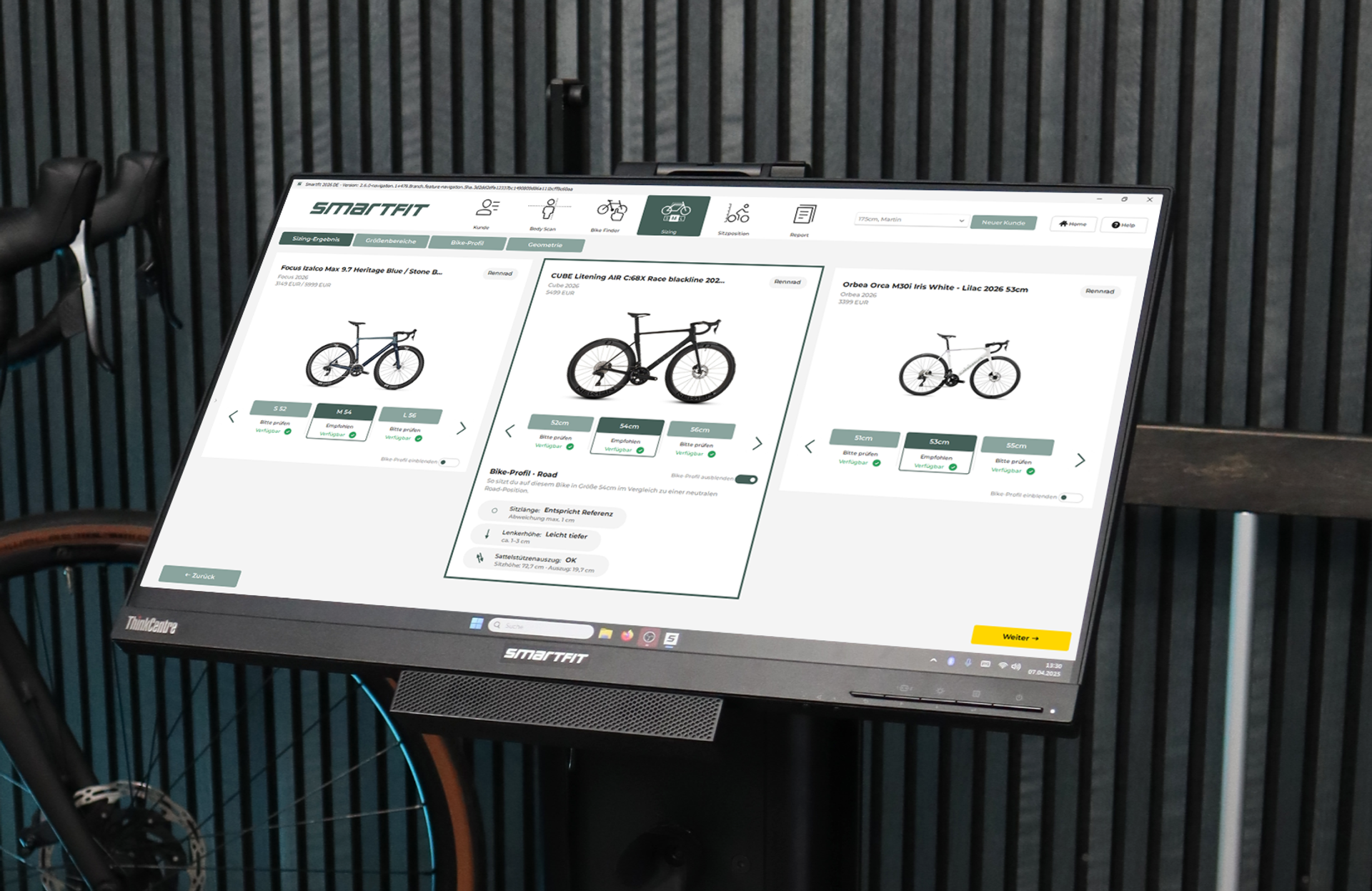 Mit der Smartfit Software 3.0 hebt Smartfit die digitale Verkaufsberatung im Fahrradhandel auf ein neues Niveau. Sizing, Bike-Auswahl, Sitzposition und Ergonomie greifen nun noch nahtloser ineinander – ohne Medienbrüche, ohne doppelte Erklärungen, ohne unnötige Komplexität. Das Ergebnis ist ein System, das Beratung nicht nur präziser, sondern vor allem effizienter und verständlicher macht.