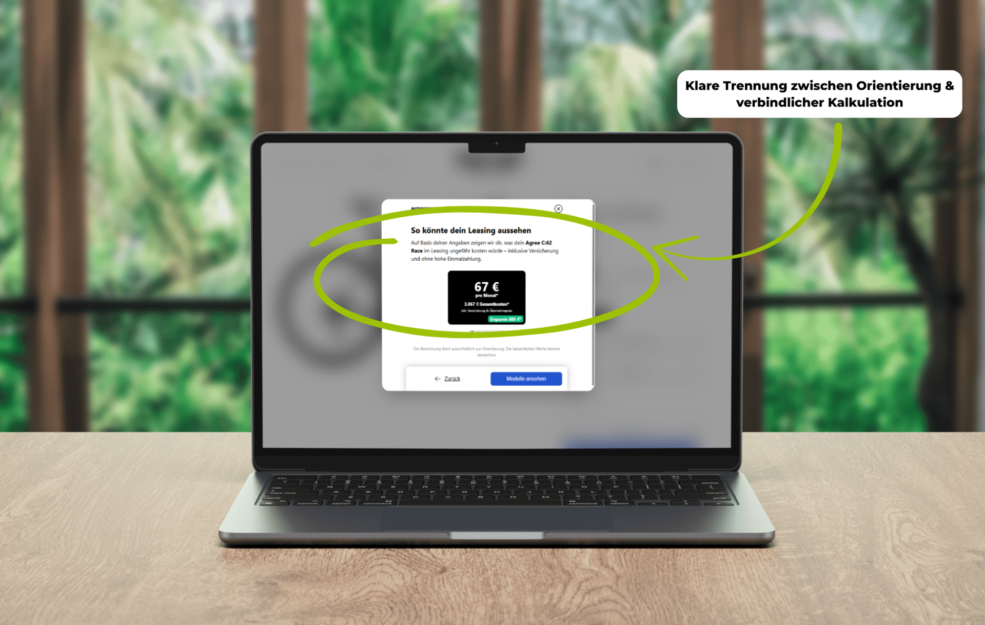 Im Shop hinterlegte Parameter wie Rabatte, Preise oder Leasingkonditionen werden automatisch berücksichtigt und sorgen so für eine präzise, kontextbasierte Darstellung.
