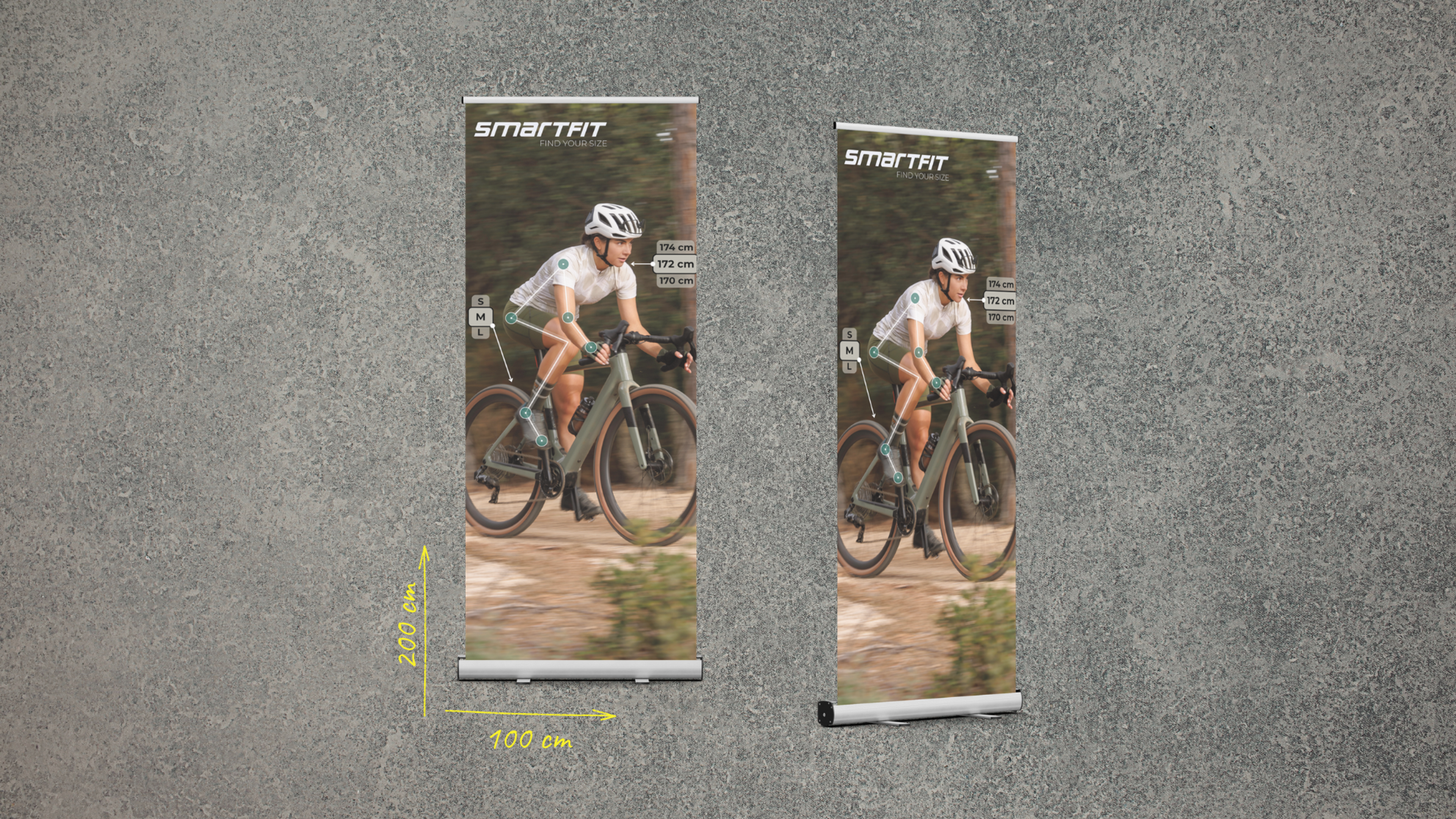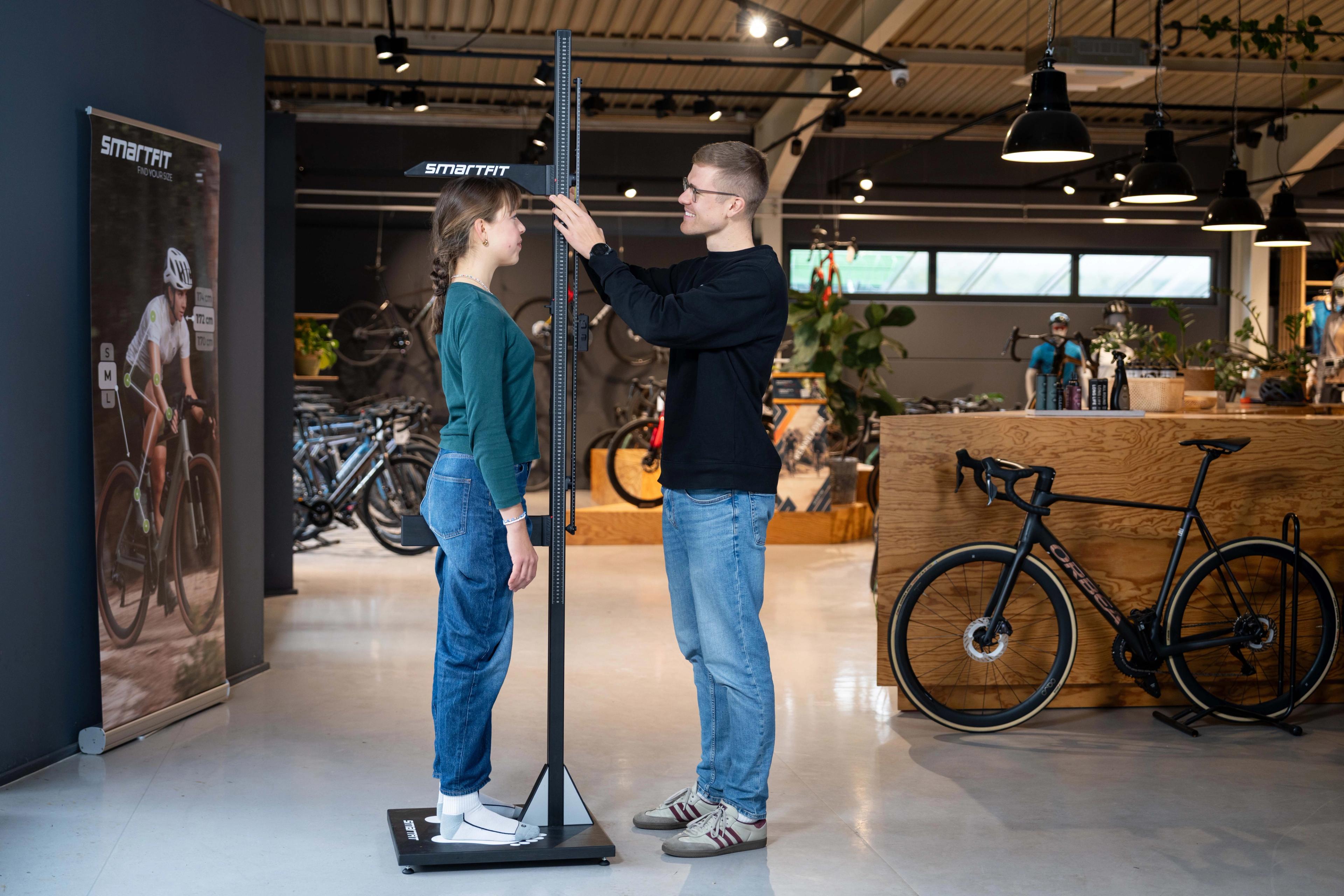 Mehr Sichtbarkeit, ohne Mehraufwand: Das Basic Kit ist bei jedem Smartfit System inklusive und sorgt dafür, dass eure Kund:innen Bikesizing und -fitting im Store sofort wahrnehmen. So wird Größenberatung direkt am Point of Fit präsent, verständlich und greifbar.