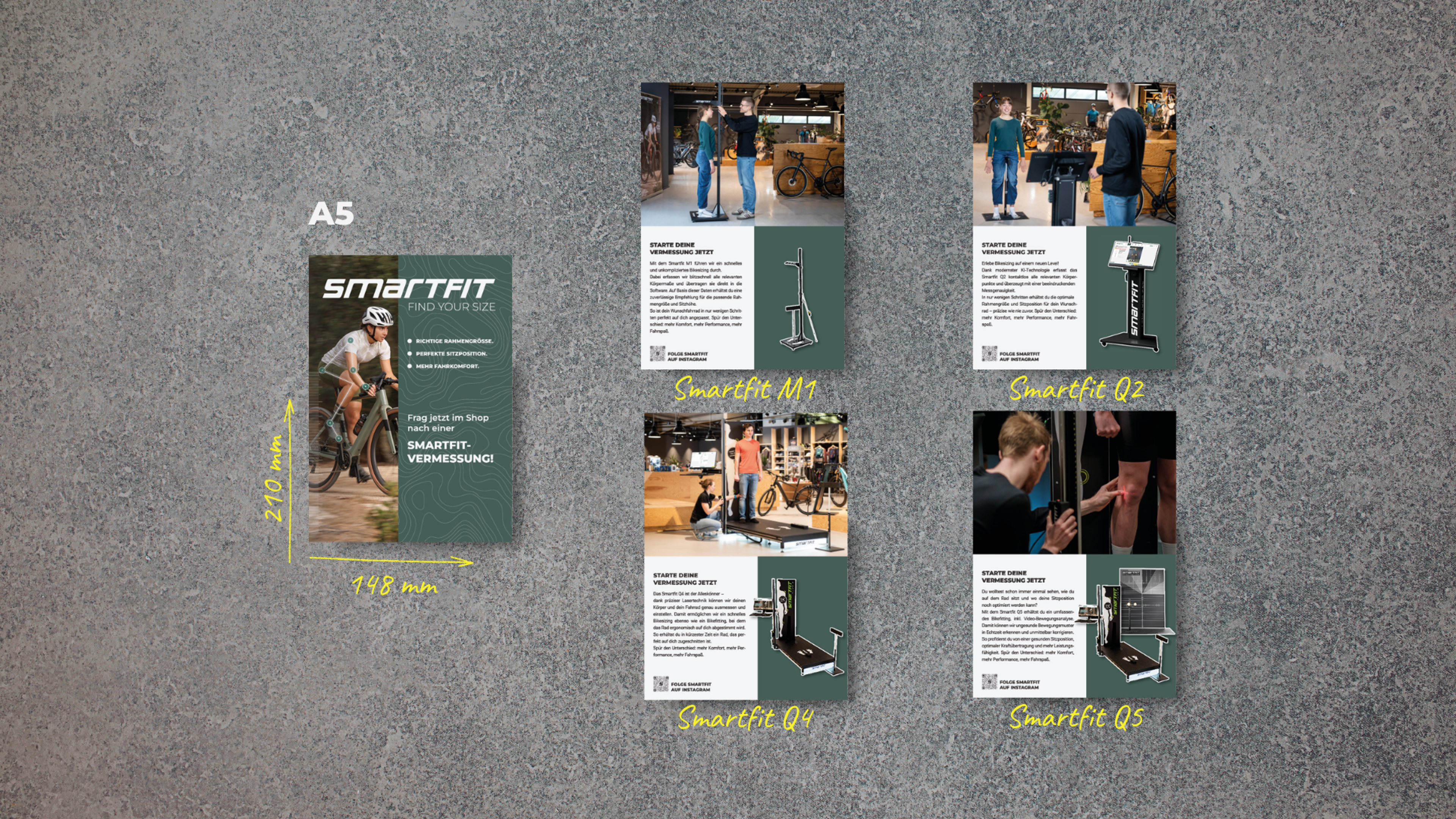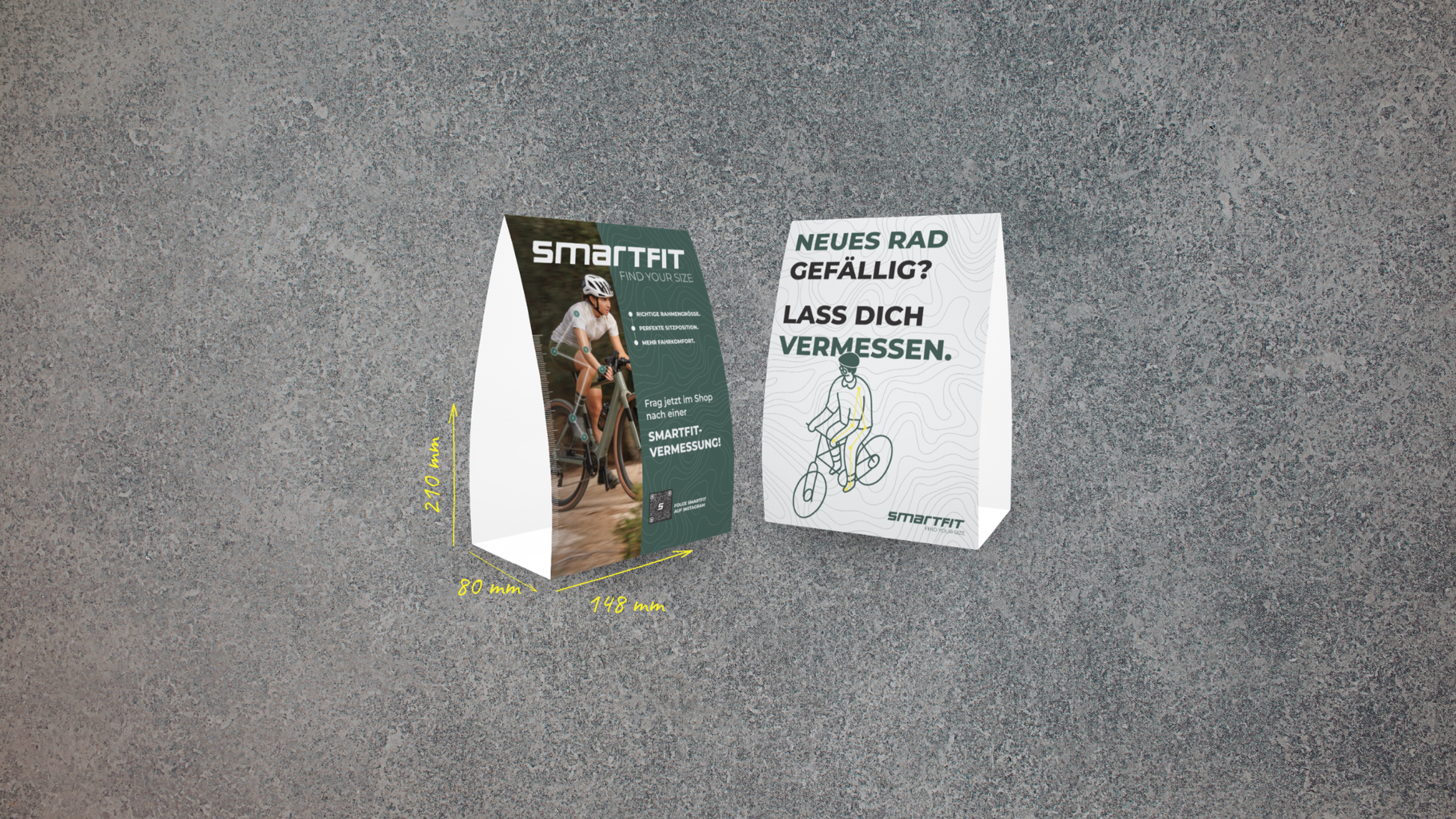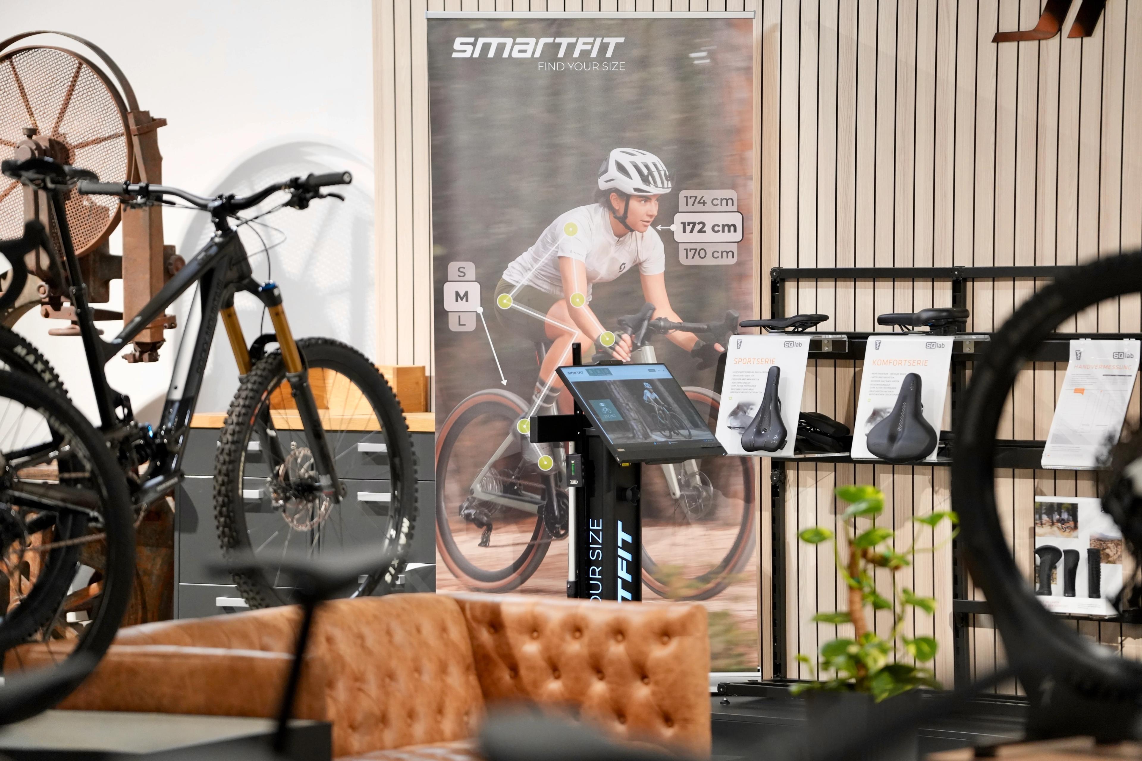 Mit dem Point of Fit wird Smartfit in eurem Laden nicht nur sichtbar, sondern erlebbar. Die verschiedenen Marketingmaterialien schaffen gezielte Kontaktpunkte auf der Fläche, lenken die Aufmerksamkeit eurer Kund:innen auf den Themenbereich Bikesizing und/oder Bikefitting und machen auf den ersten Blick deutlich, wofür ihr steht: moderne, professionelle und hochwertige Beratung.