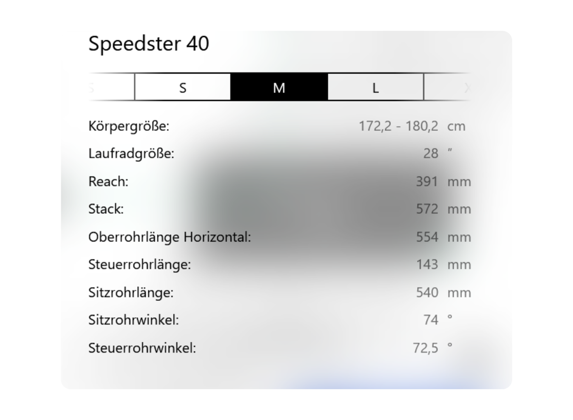 Das Bike Geometry Display visualisiert alle relevanten Rahmen- und Geometriemaße in klar strukturierter Tabellen- oder Grafikform – präzise, verständlich und interaktiv. Deine Kund:innen erhalten auf einen Blick umfassende Informationen zu Größen, Winkel, Längen und weiteren Geometriewerten, um verschiedene Rahmengrößen effizient zu vergleichen.