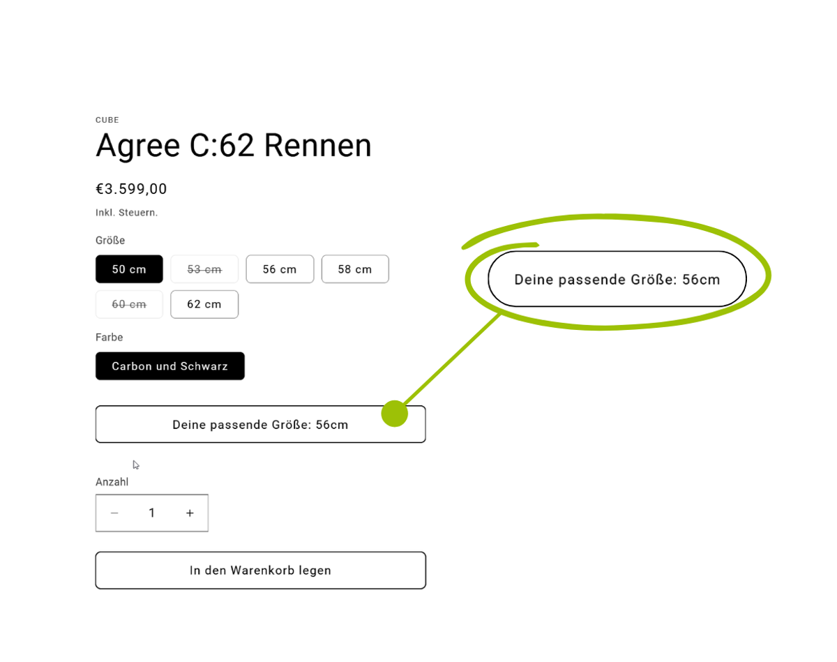 - Optimale Auslastung deines Sortiments: Nicht verfügbare Größen führen nicht mehr zum Kaufabbruch, sondern zu einem gezielten Upsell oder Cross-Sell.