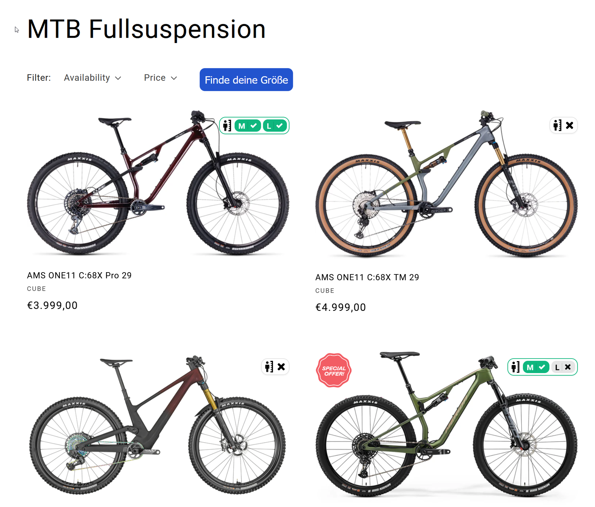 Das Feature ist direkt auf Kategorieseiten eingebunden und zeigt auf einen Blick, welche Produkte in der passenden Größe verfügbar sind.