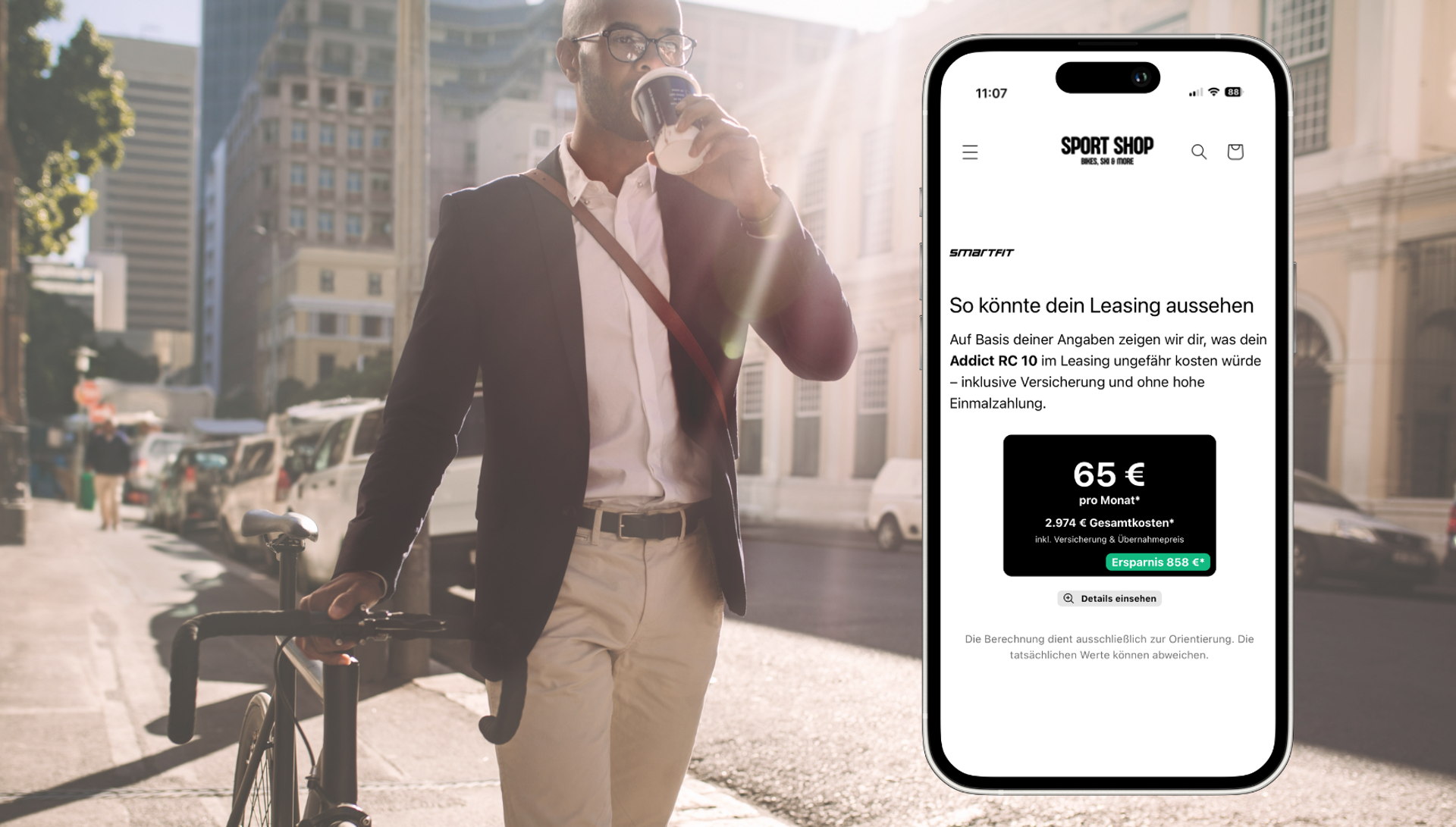 With its new leasing widget, Smartfit provides the perfect answer to the challenges that have slowed down the boom in company bikes. While millions of employees already lease bikes through their employers, online retailers have so far lacked a simple, transparent way of presenting the monthly costs. Smartfit now solves this problem—directly on the product page, without detours or media discontinuity.