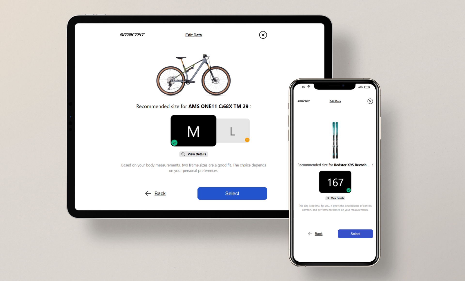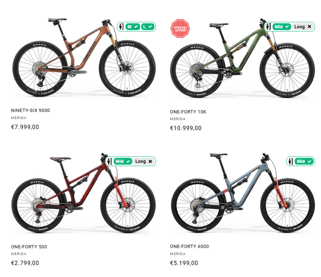 Our Product Sizing enables precise, customized size recommendations for bikes, skis, and other sporting goods – based on body measurements such as height, inside leg length, gender, and other relevant user information. The algorithm-supported recommendation is model-, class-, or category-based and specifically supports your customers in selecting the optimal product size.