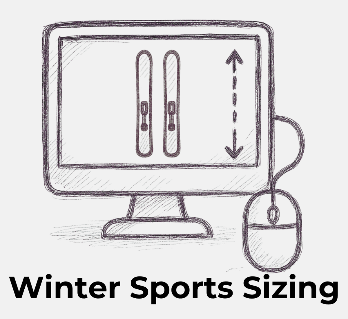 - Sizing for skis, snowboards, poles, and other winter sports gear