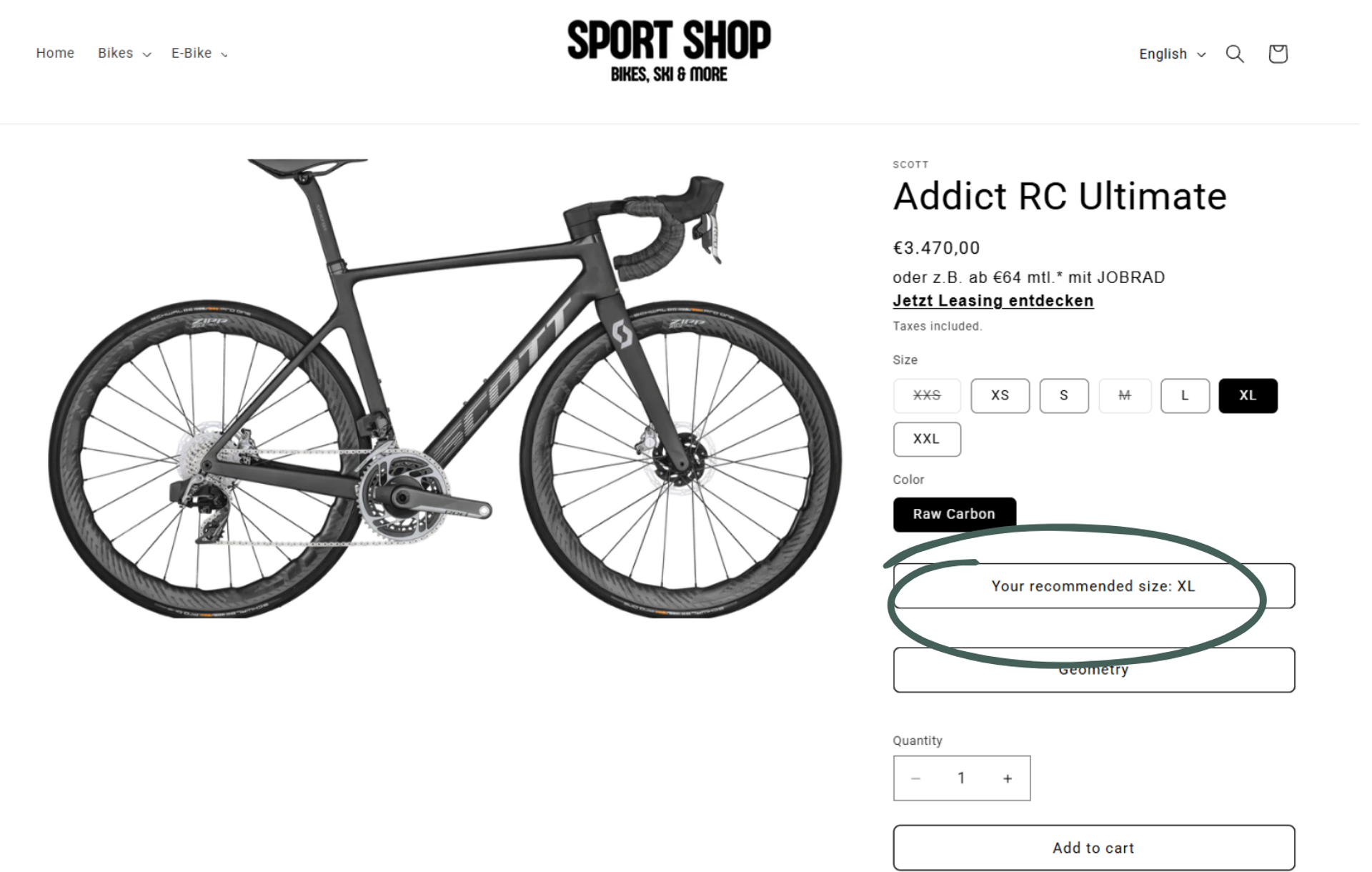 The feature is seamlessly integrated into category pages and instantly shows which bikes are available in the right size.